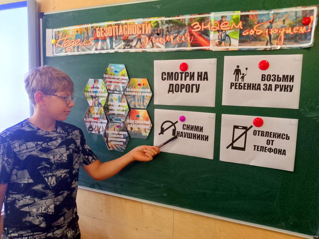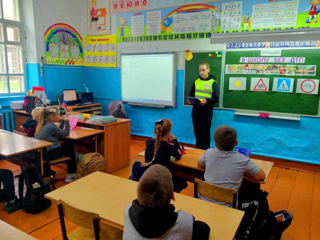 В рамках Недели безопасности дорожного движения с учениками начальных классов прошло увлекательное тематическое занятие по правилам дорожной безопасности «В школу без ДТП». Активист Движения Первых и член отряда ЮИД «Дорожный патруль» Суров Алексей, рассказал Орлятам России о важности изучения и соблюдения Правил дорожного движения (ПДД). Они рассматривали яркие иллюстрации проезжей части, чтобы лучше понять, как вести себя пешеходам, когда и где можно безопасно переходить улицу. Детям были вручены буклеты с информацией об основных дорожных знаках, которые должен знать каждый пешеход. В итоге дети стали более внимательными и дисциплинированными участниками дорожного движения — они понимают, как важно соблюдать безопасность на дороге и беречь себя и окружающих.